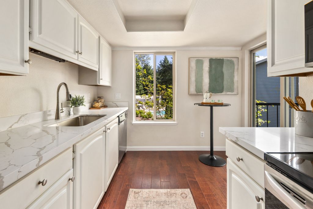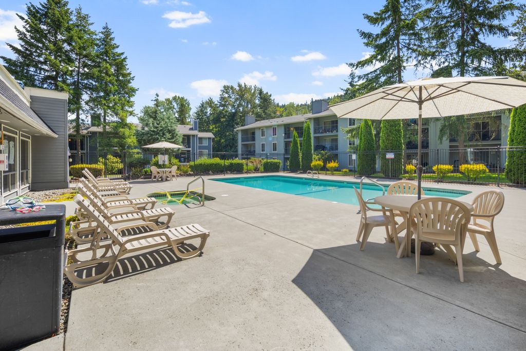 Welcome to this updated 3-bed, 2-bath home in Sammamish Bluffs. Enjoy a refreshed kitchen with new countertops/appliances, fresh paint, and a cozy fireplace. The open layout flows to a spacious covered patio with two sliders, outdoor storage, and private, peaceful views. Community features a pool, hot tub, clubhouse, and sports court. Located in the Issaquah SD and close to Microsoft, Lake Samm, I-90, and Issaquah amenities. Two reserved parking spots, guest parking, and low HOA dues covering water, sewer, and garbage. Pre-inspected and move-in ready!